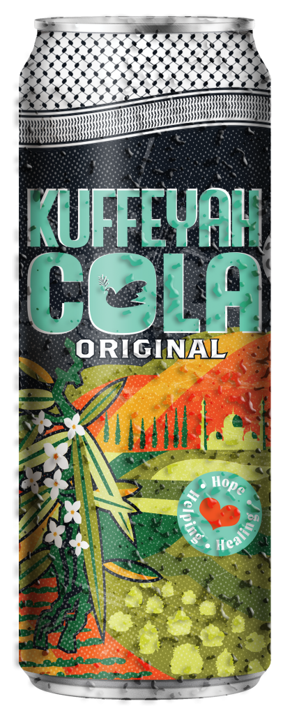 “A taste of resilience, a sip of change” is how Kuffeyah Cola presents itself. It was launched in August 2024 by Mohammed Wafi, who came to England from Gaza with his parents and five siblings and later settled in Newcastle upon Tyne. The family has operated a Palestinian and Lebanese restaurant and shisha bar in the city for several years. The brand takes its name from the keffiyeh, a traditional Palestinian scarf associated with Palestinian national identity.